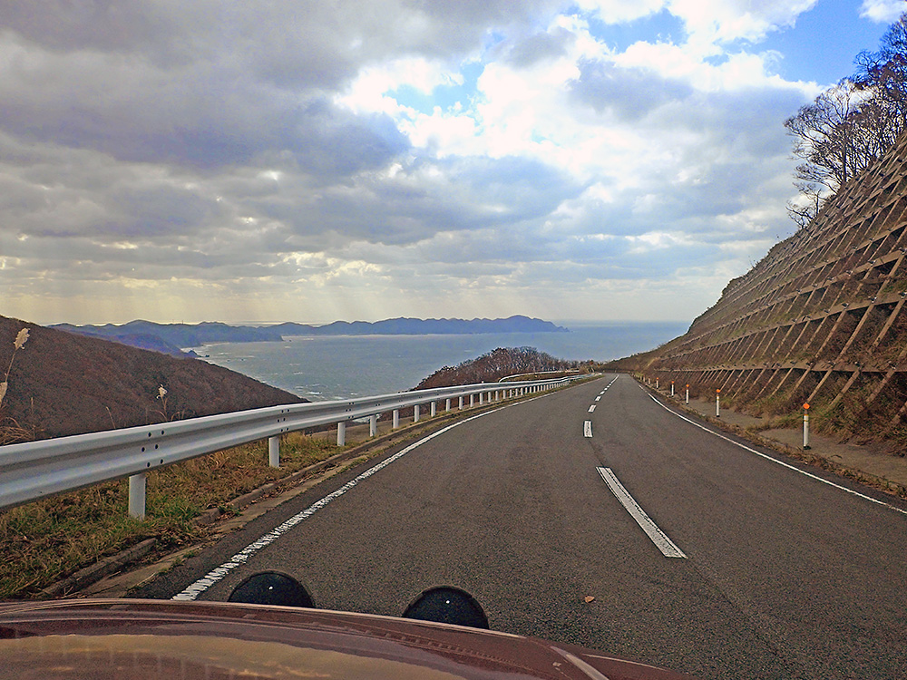 やはりここは「まるで竜がこの地に泊まっているようなのでこう呼ばれている」ということにしてもらいたいですねぇ。実際にこの道を走ると、写真のようなワインディングロードで山岳部を走り抜け、その後いきなり眼下に日本海の紺碧の海が表れるという、本当にドラマチックなドライブコースなのですから!