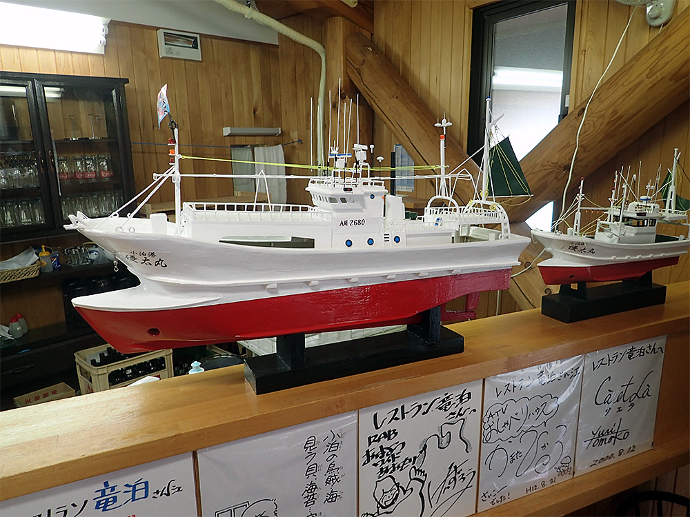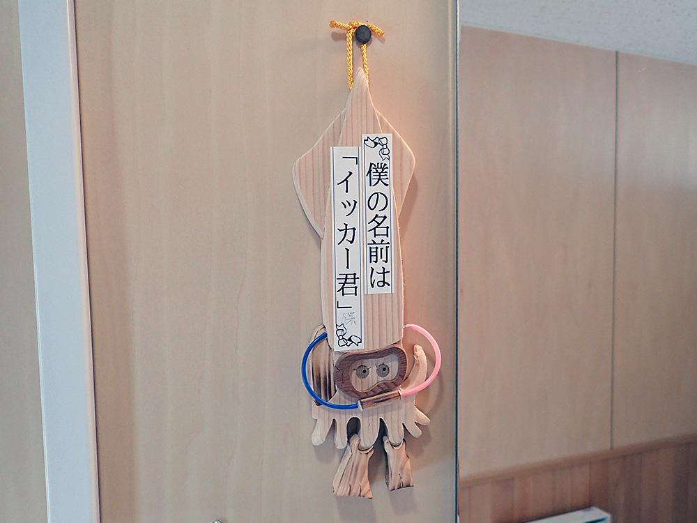 道の駅「こどまり」のキャラなのか、この地方共通のキャラなのかは不明ですが、「やっつけ感」がたまりません。「イッカー君」というネーミングも「ま、いっかぁ」という感じで、その「ゆる過ぎ感」に花を添えています。しかもこれ、人通りの少ない通路で発見したのですよ♪ あとで知ったのですが「小泊の漁獲高の70%はイカ漁」とのことでした。