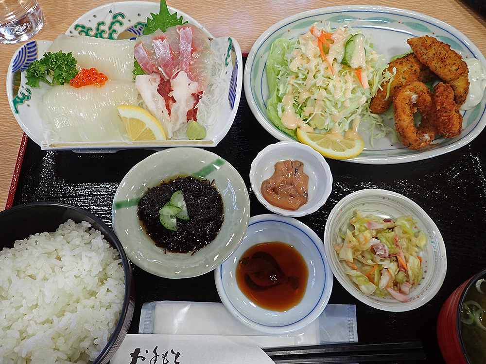 海峡ドッグだけでは物足りずオーダーしたのが、この「ブルジョワっぽい定食」です。通常、ドライブ中はたいてい「カレーライス」か「ワンハンド系フード」で済ますのですが、海を見ていたら妙に刺身系を食べたくなったんですよ♪