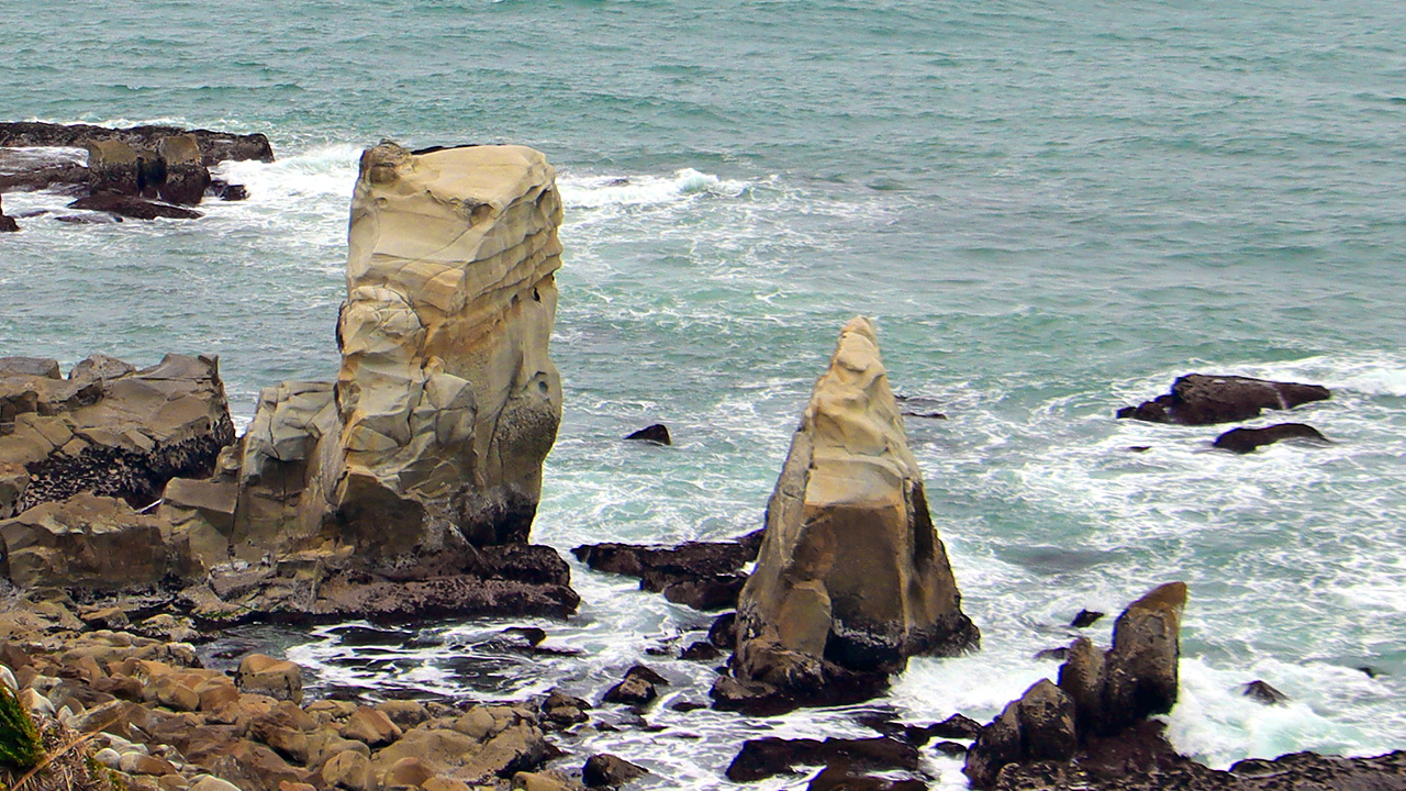 銚子ジオパークは「犬吠埼灯台近辺」だけでなく、銚子半島の南側にも「千葉県最古の岩と言われる千騎ケ岩(せんがいわ)」や「文字通り犬の形をした犬岩」、そして長さ4〜50mもあり「東洋のドーバーとも呼ばれる屏風ケ浦」などもあるようです。