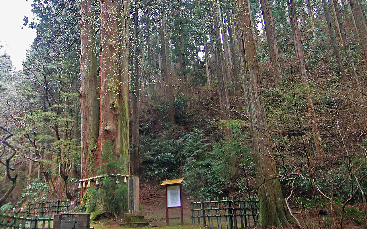 ご神木/三本杉: 幹周囲九メートル、高さ五十メートル推定樹齢600年、幹が地上3メートルより三本に分れ均等に天をつく巨樹で、県指定天然記念物であり林野庁指定の全国「森の巨人たち百選」に茨城県で唯一選定されている樹木らしいです。