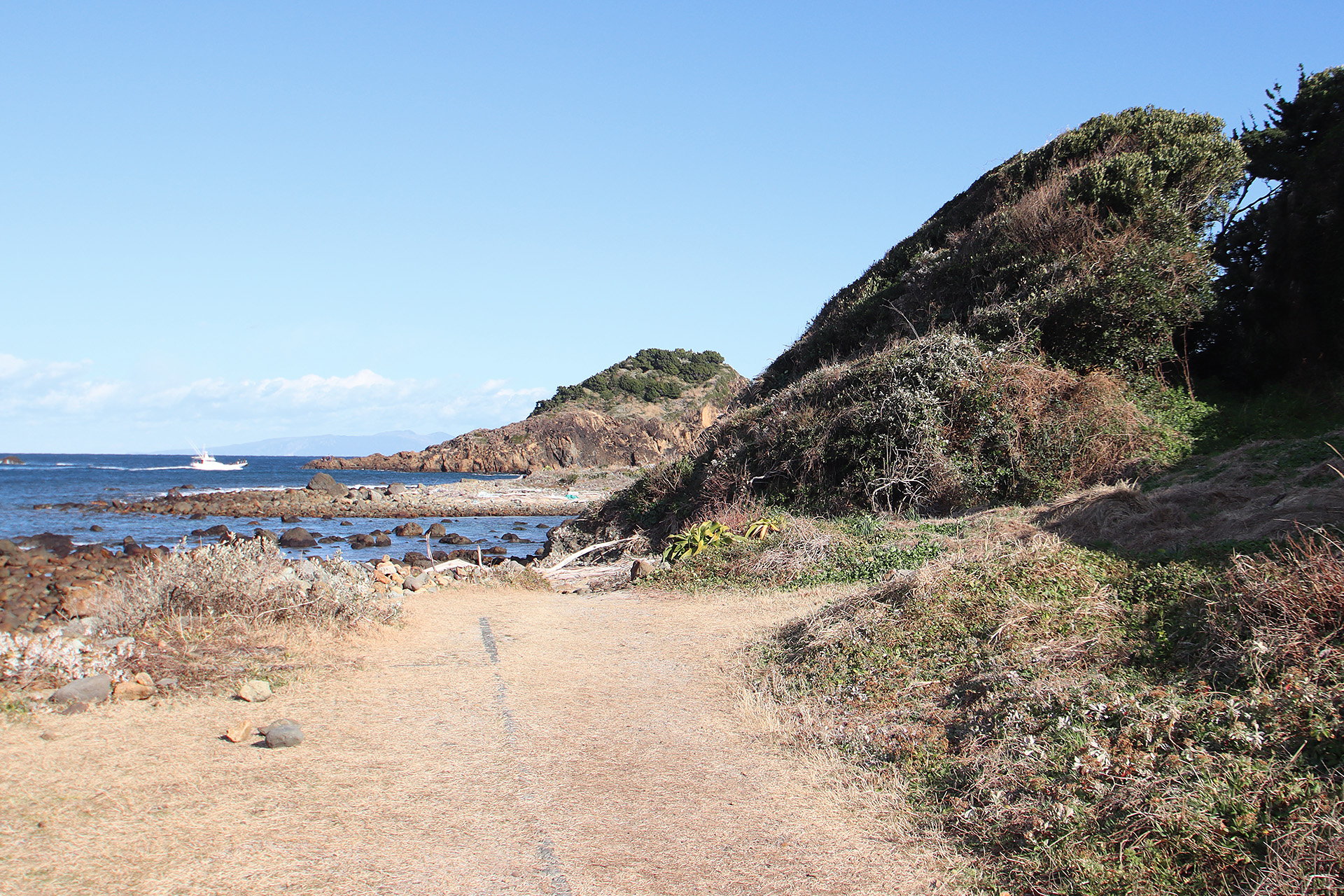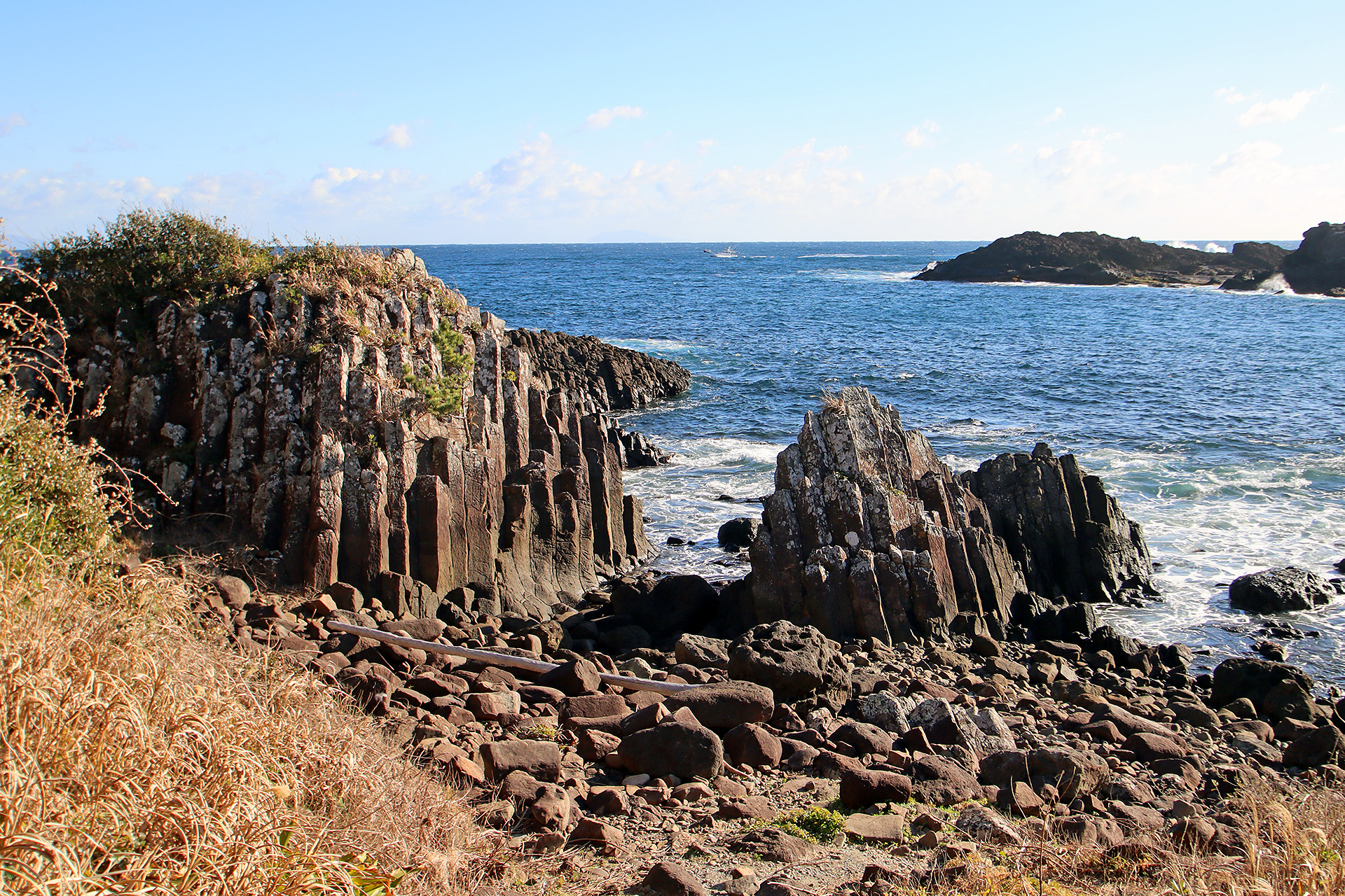 看板も多少出ていますが、やはりカーナビに頼った方が無難ですねぇ♪ 水仙が咲き乱れる1月あたりにはかなり混雑が予想されますので、柱状節理を存分に楽しみたい場合には、シーズンオフを狙っていくのが良いかもしれません。