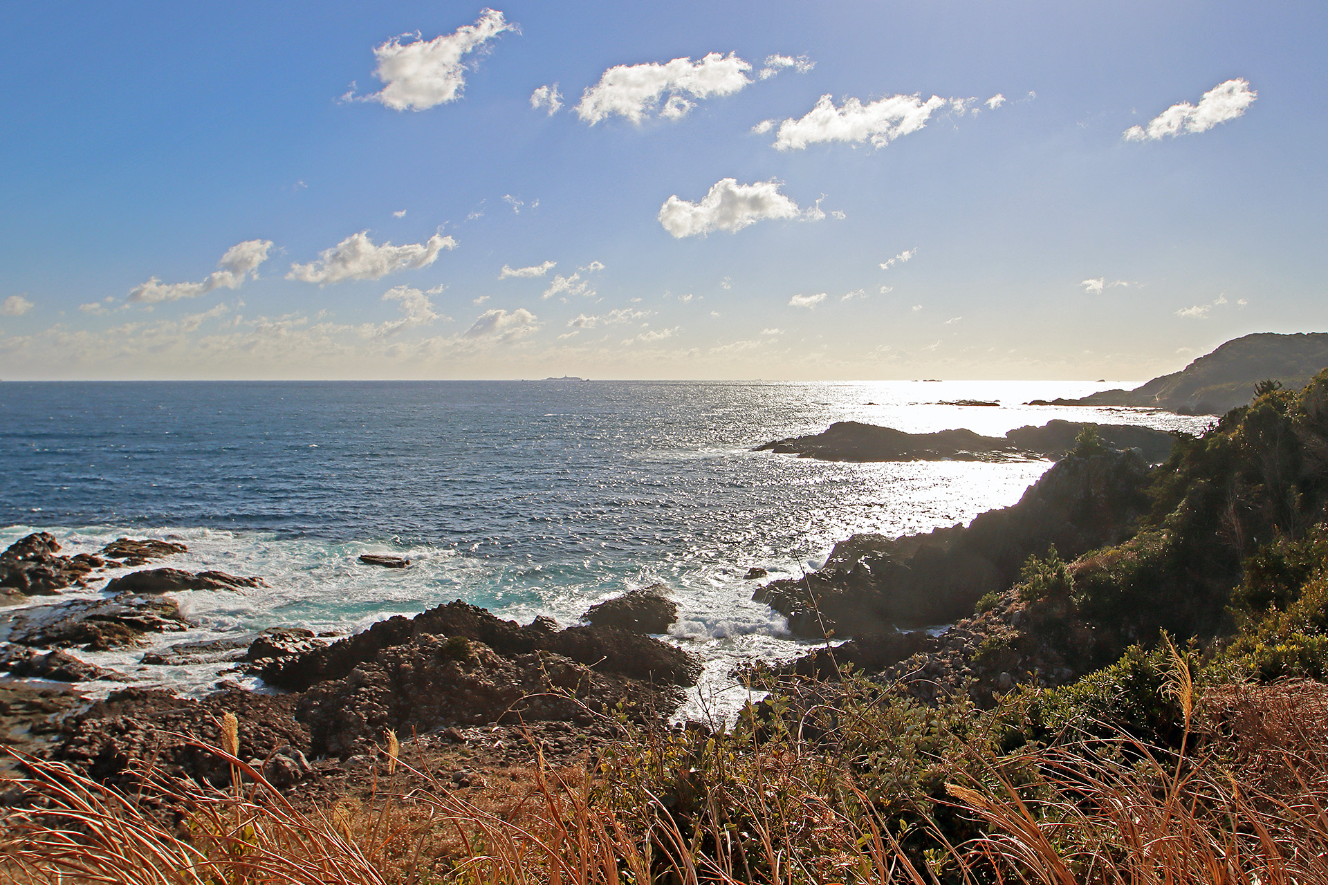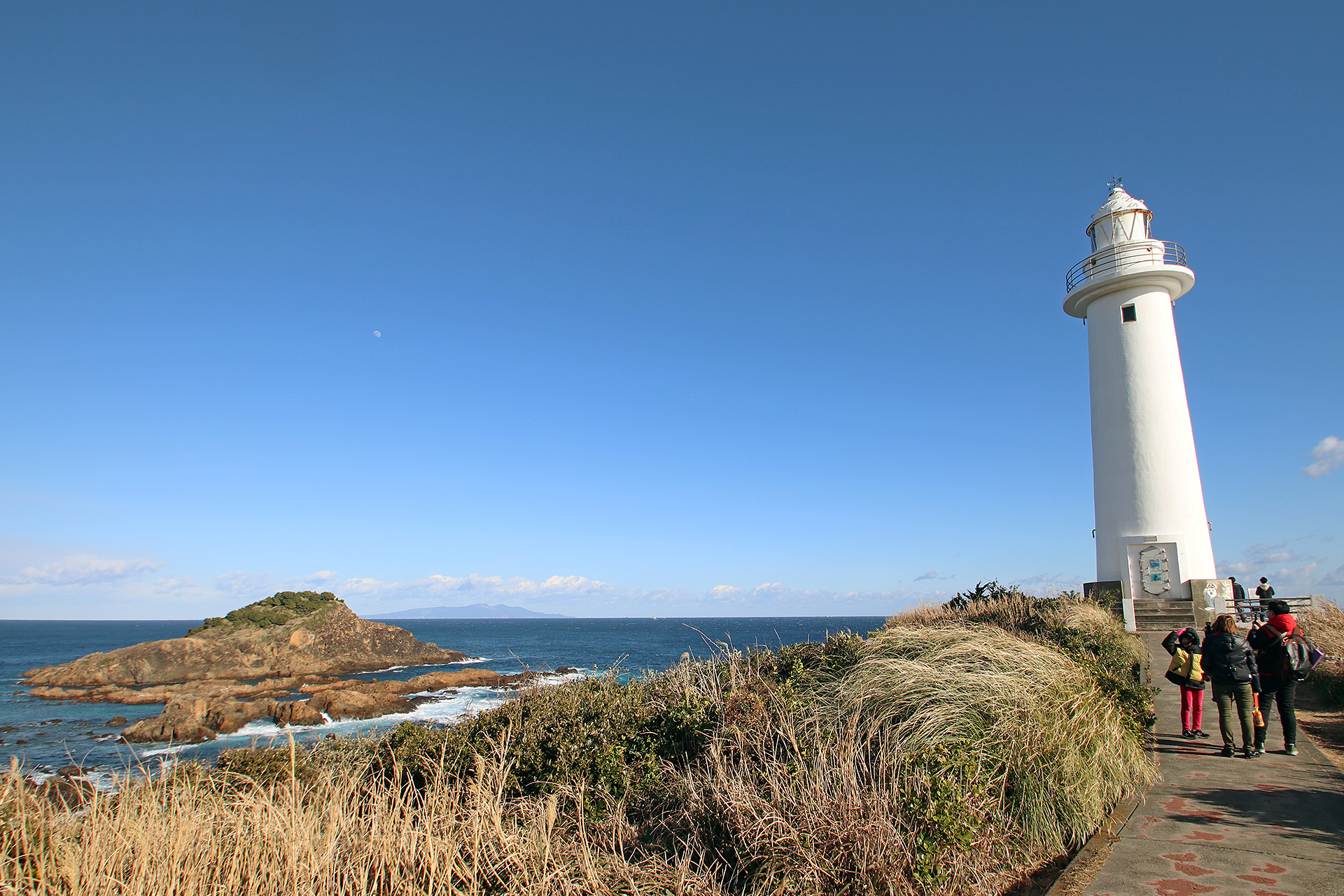 青い海とゴツゴツした岩と白い灯台、なかなか良い感じです♪