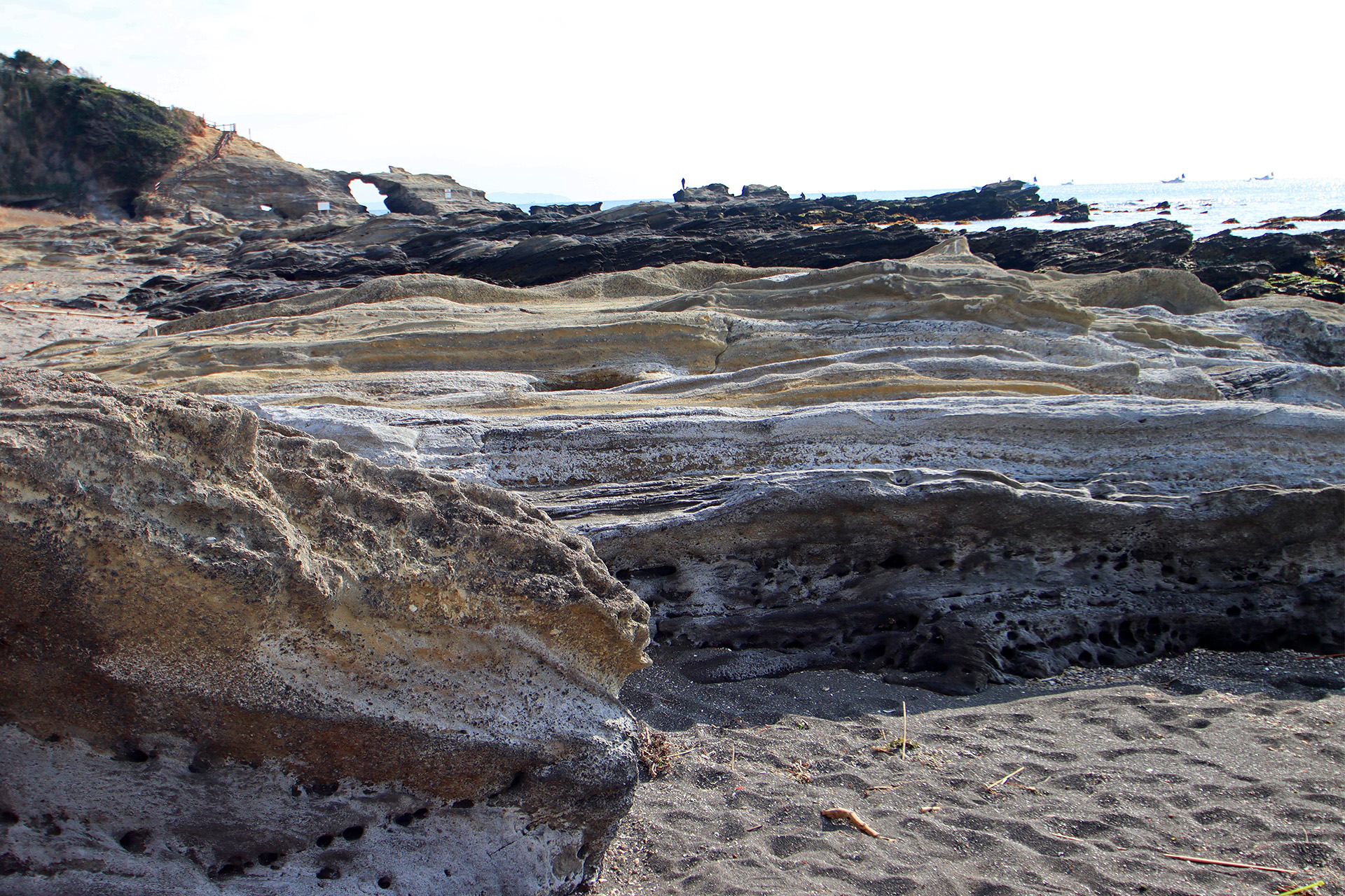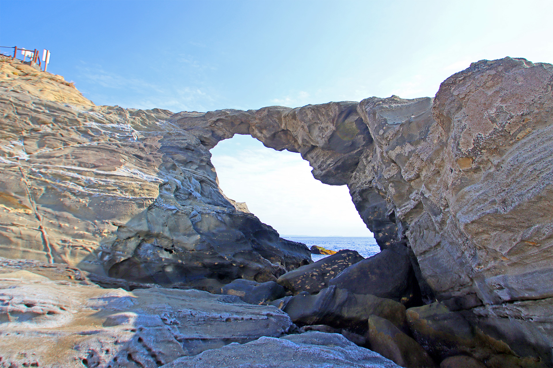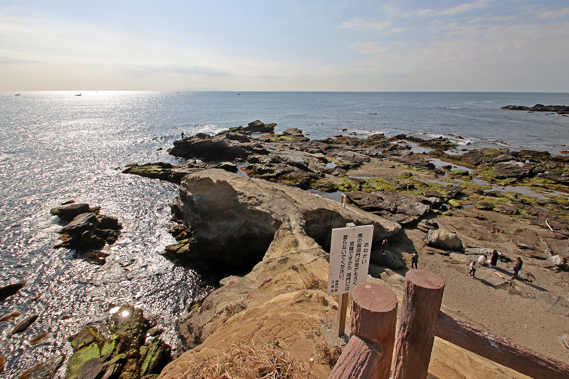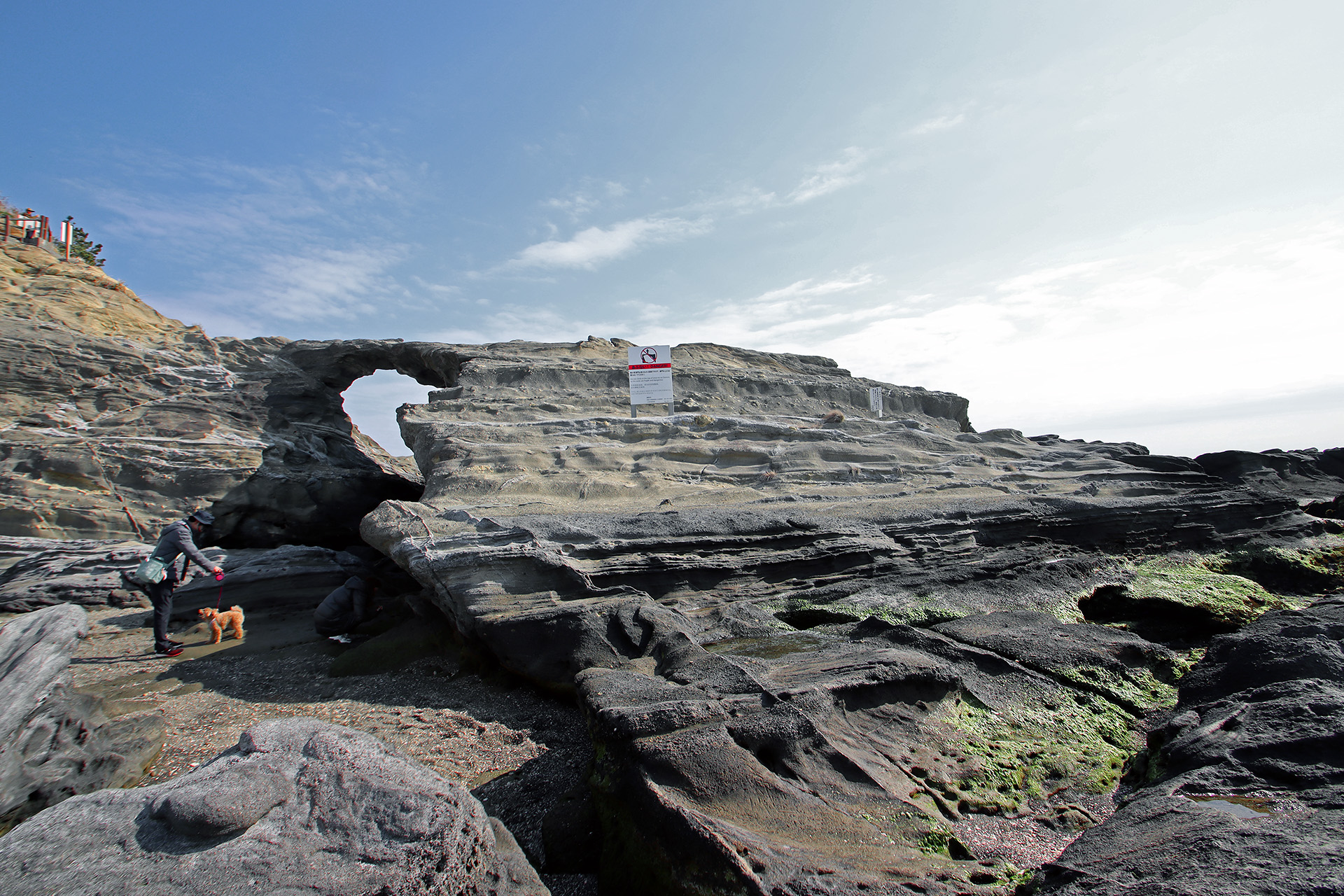 城ケ島の超人気モノ「うまのせ洞門」を上から眺めるとこんな感じ。