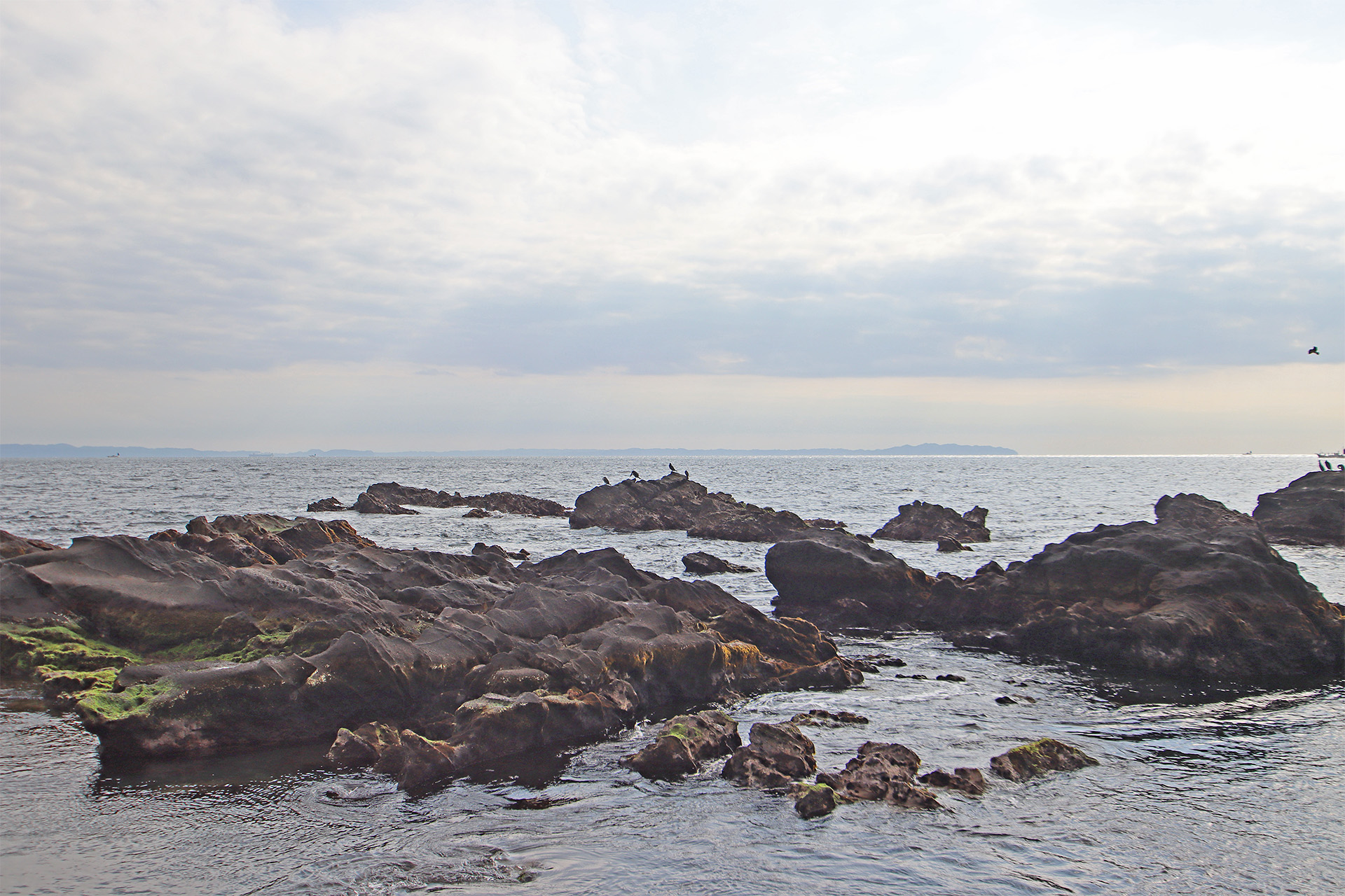 京急線の「三崎口」で降り、京浜急行バスで30分ほどで「城ケ島」に着きます。「城ケ島公園」に行く場合は、手前の「白秋碑前」で下車する感じです。下車後徒歩5分で着きます。