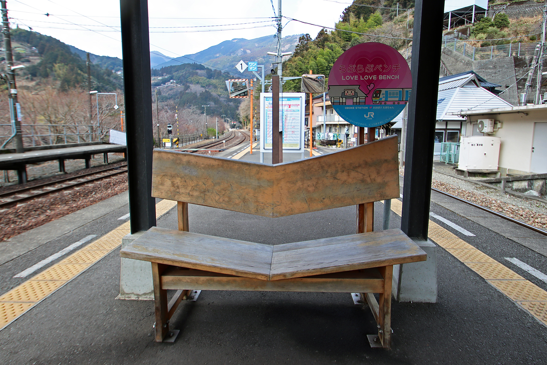 カップルがピッタリくっついて座れるベンチ♪