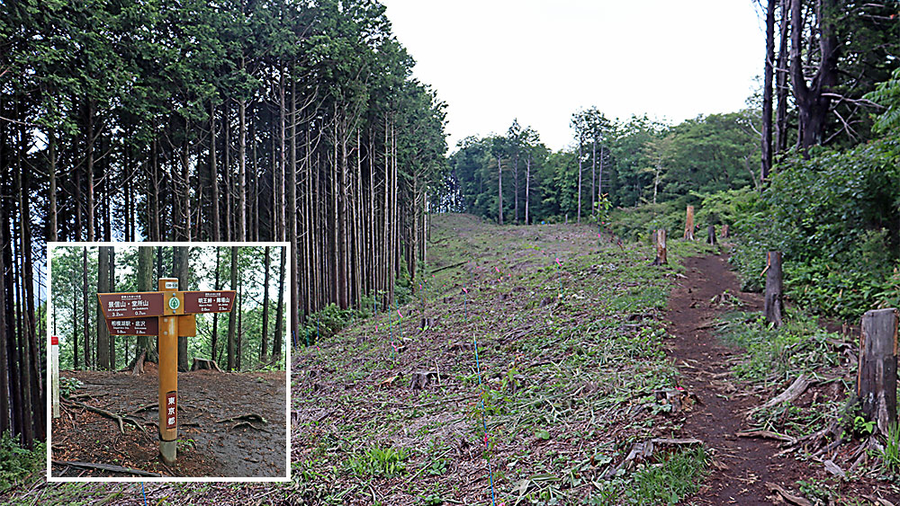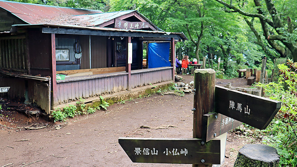 明王峠:今日は売店は開いていなかったです。最近の流行り病が原因なのかな? トイレには相変わらず巨大なコオロギがいました。陣馬山山頂まで、あと2キロちょっとです!(14:14)