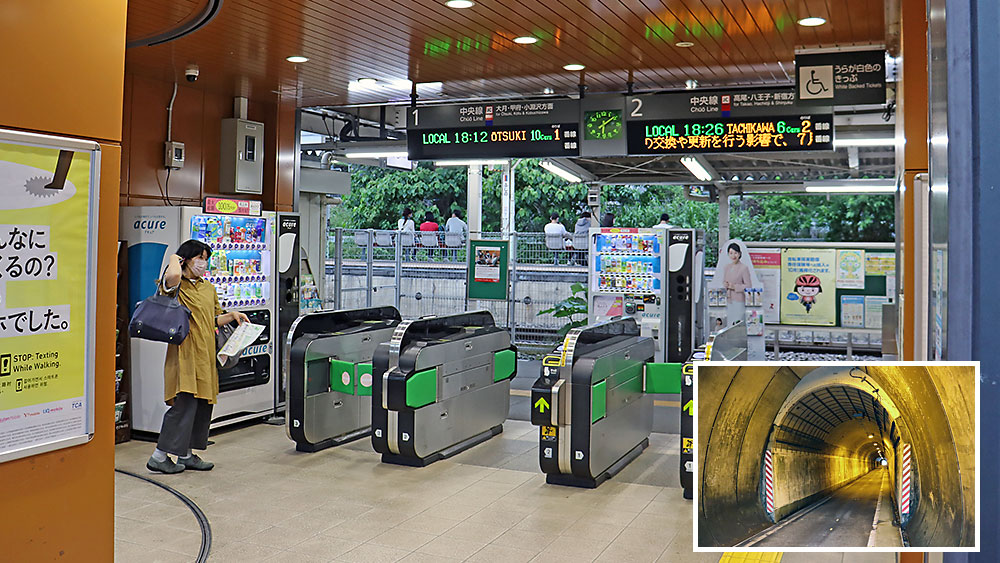今回のコースで一番怖かったのが、下の写真の「藤野駅」に到着する直前に 約100メートルの「トンネル」でしたねぇ。 車がビュンビュン走るトンネルなのに「ガードレール」が無いのですから。