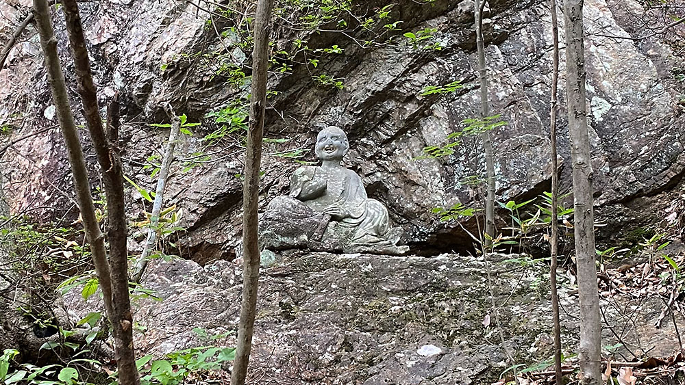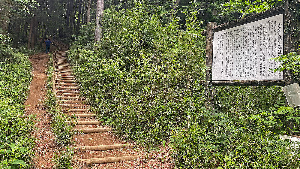 源義経の母である常盤御前が、 あまりの景色の良さに振り返り振り返り上ったことから「見返り坂」と名付けられたとのことですが、 現在は木々が茂りまくり、振り返っても「木」しか見えません。 それに結構、疲れる坂ですww