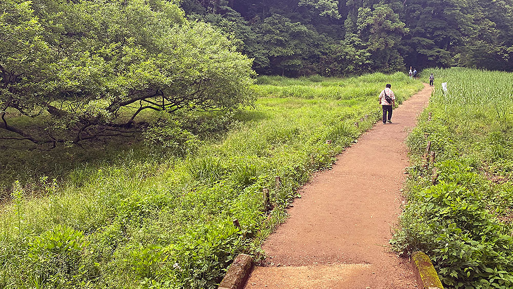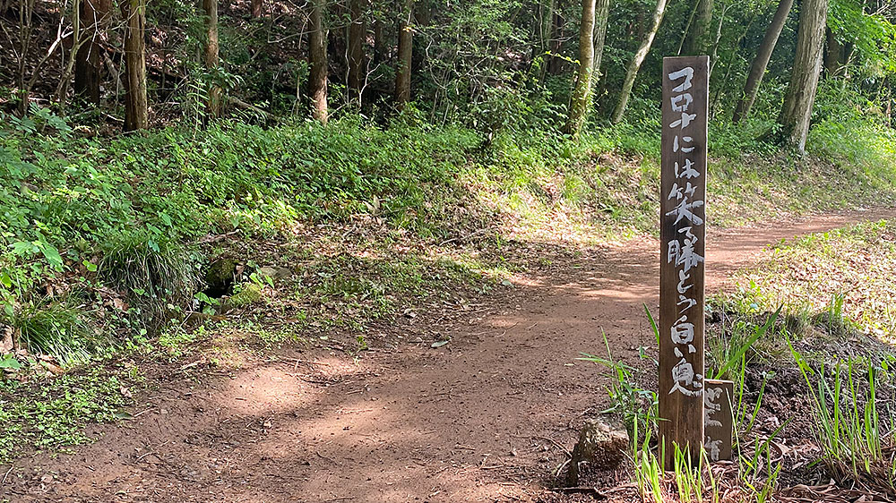 天覧山から降りたところの道です。 ときどき目につく「マムシ注意」の看板が気になりますが、 それをのぞけば実に良い散歩道。