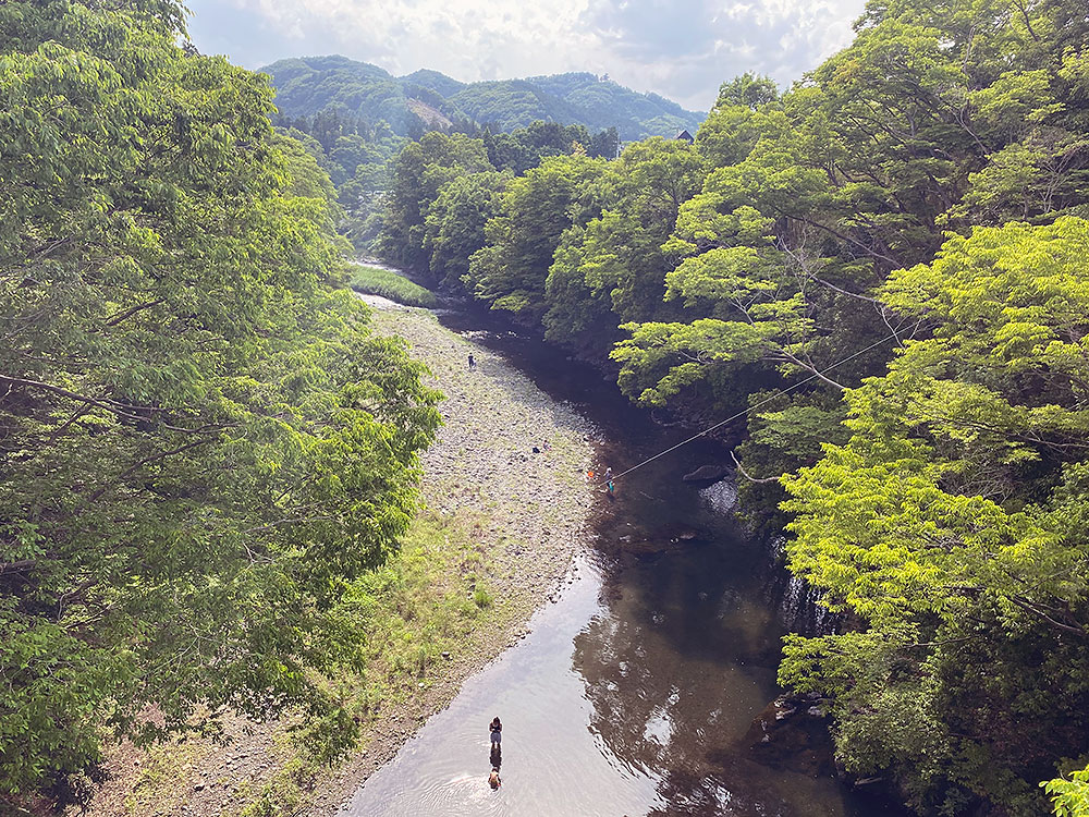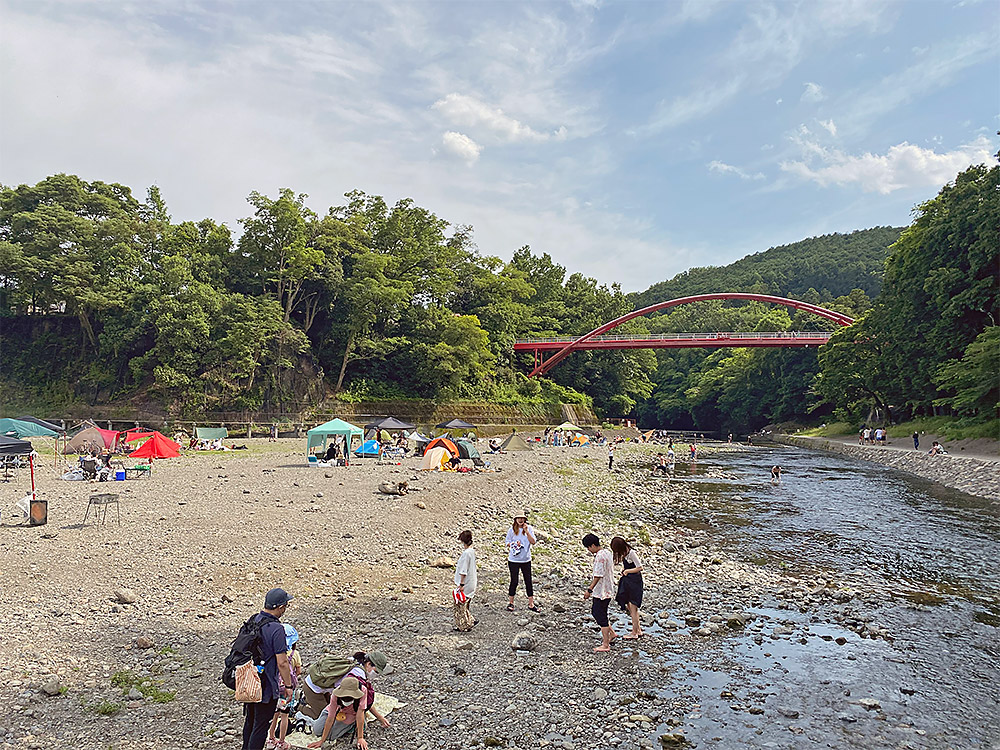 飯能河原と赤い橋:ここもヤマノススメの聖地ですよね。河原はかなりにぎわっていて、のんびりと河原でたたずむのであれば、ひとつ前の写真の場所あたりが良いかもしれません。