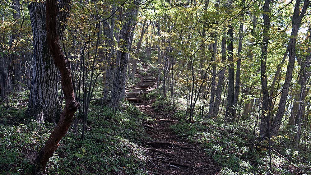 高台を過ぎると、次の高台まで、 こんな感じの森の中の道をずーーと進むのです。