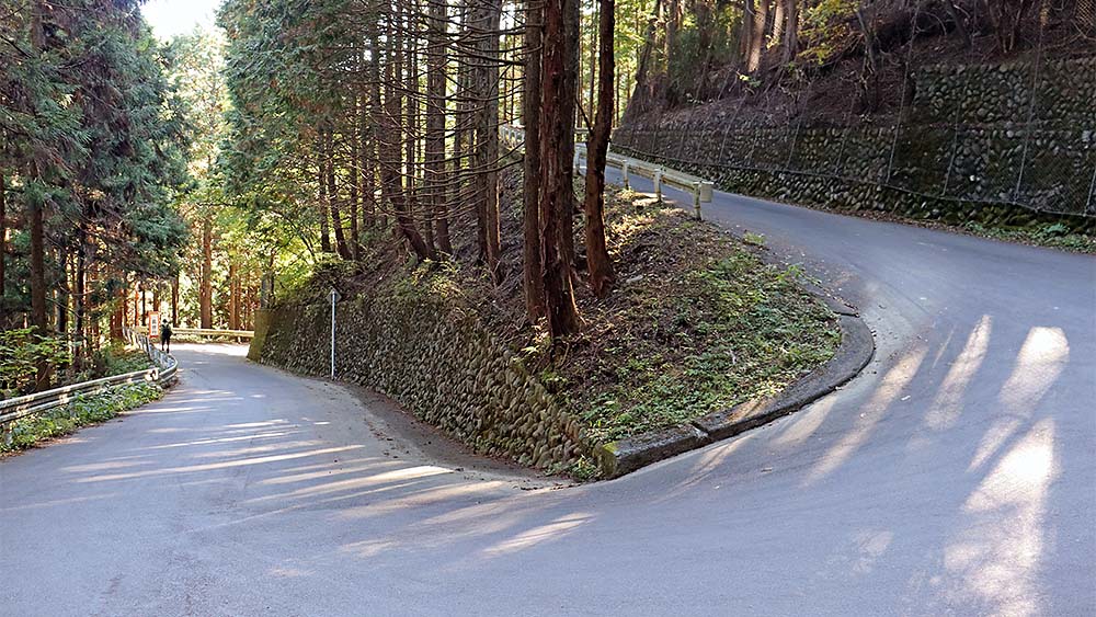 舗装道路ですが、永遠と続く降り道。こういう道が一番、膝に来るんです。
