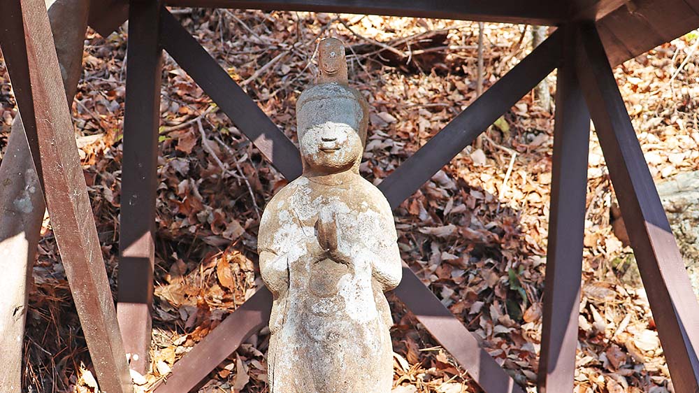 登り始めの場所にあった馬頭観音像。柔和な顔の馬頭観音はわりと珍しいです。苦悩や悪行を取り除くという本来の馬頭観音の役割が、死んだ牛馬などを供養するという役割に変わってきた故の笑顔なのでしょうか。