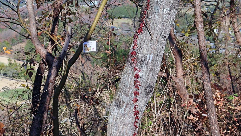 紅葉したツタというのもなんか良いです♪ アプリによると「アメリカヅタ」らしいです。