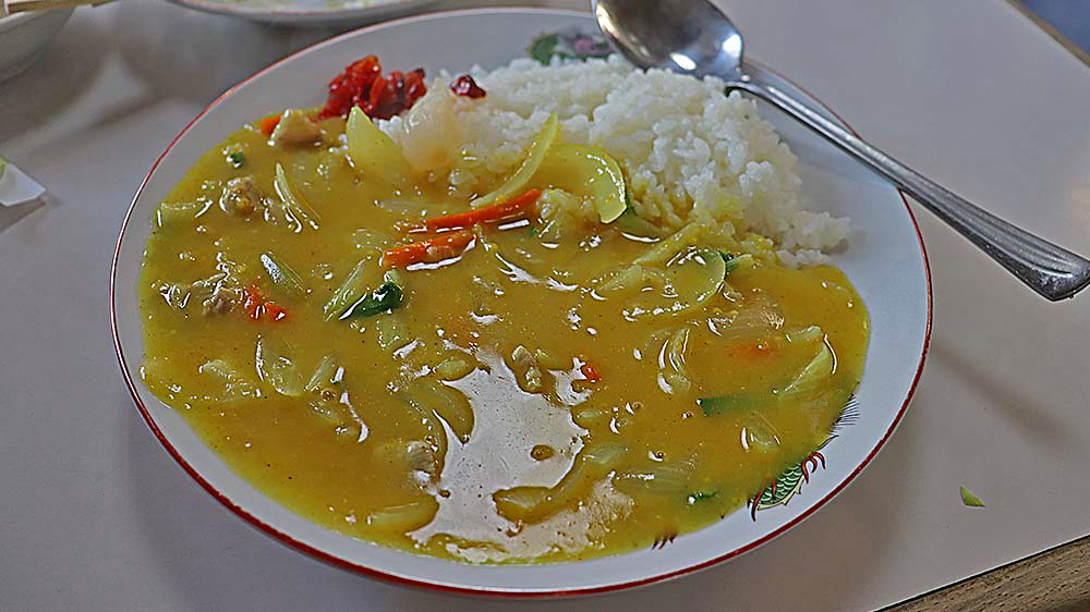 〆のカレーライスが最高に美味かった! 白っぽいルーは「ラーメンのスープ」を使っているらしいです。田舎風味ですが斬新なエッセンスも兼ね備えた逸品!