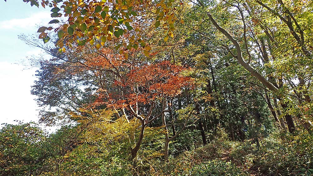 紅葉が始まりかけた高尾山。直接ではなく南側の山稜を伝い、ぐるーーっと回って登るコースなのです♪