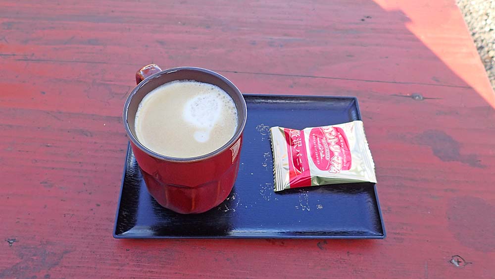 山頂でいただいたコーヒー。ちゃんとドリップなんですよ、しかもカントリーマームまで付いてきた。トレッキングのとき飲むコーヒーってまた格別なんですよね。
