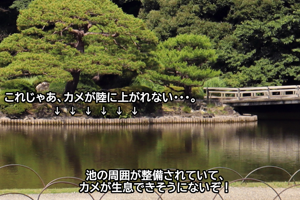 玉藻池の向こう側から「カメ」が呼んでいる!