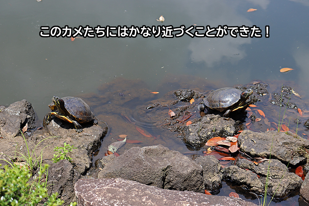 向こう側に渡ると、カメのところまで(立ち入り禁止区域じゃなくて)結構近づけました!