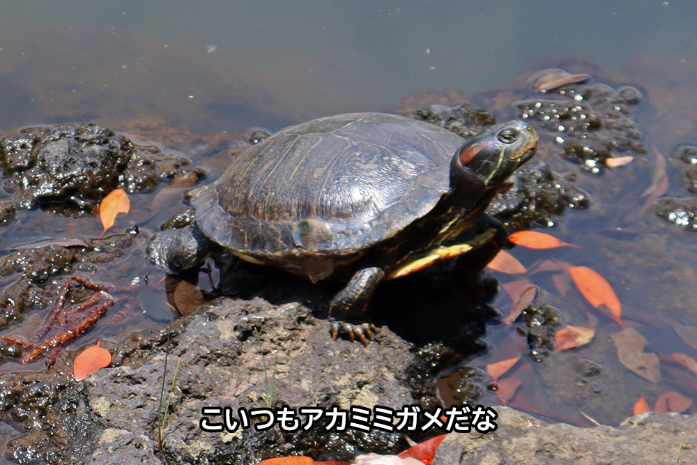 これ以外にも他の池を泳いでいるカメを何匹か見つけたのですが、この日はアカミミガメ以外のカメは見つけられませんでした。新宿御苑は外来種のアカミミガメに占拠されているようですねぇ。 このあたりも「新宿」の「夜の街の事情」と被っているのかなぁ。