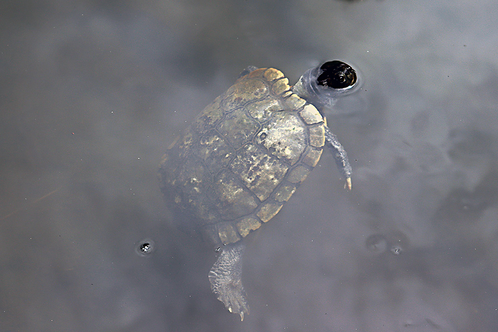 普通にカメが泳いでいました。で、よく見ると・・・。