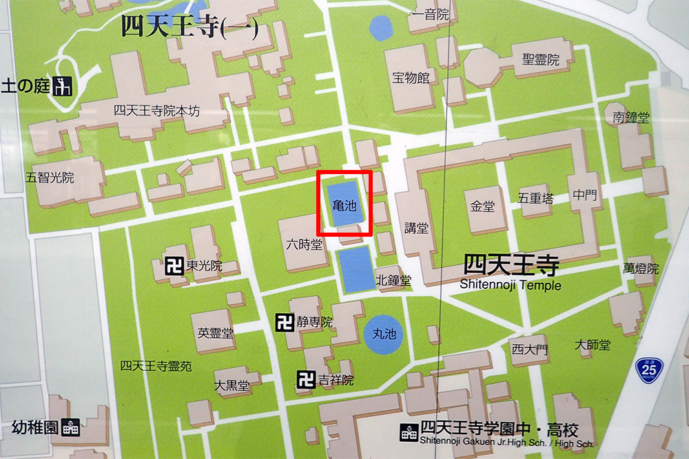 聖徳太子が建立したと言われ、わが国では法隆寺と並んで最古の寺院として有名な四天王寺で、かなりルックスの良い仁王像でも有名なのですが、本日のボクはそんなことは全く気にもとめず、ただイシガメを探すためだけにここにやってきました。