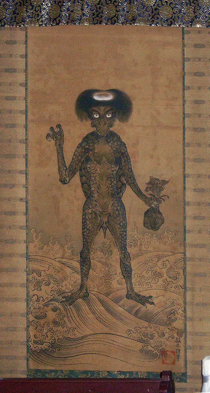 ふくよかな裸体の女性と不気味な河童との組み合わせは、男の股間にグッときます!