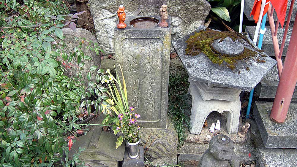 ※墓石には「てっぺんに手向けの水や川太郎」という句が刻まれています。