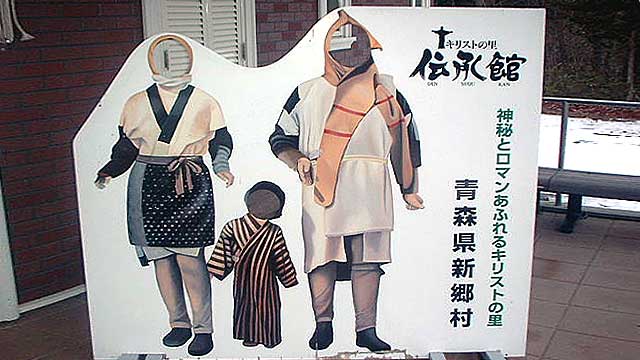 恐らく「イエスとその妻ユミコ、そしてその子供の顔はめ」です。 新郷村の伝承では子供は三人いたはずなんですが・・・。