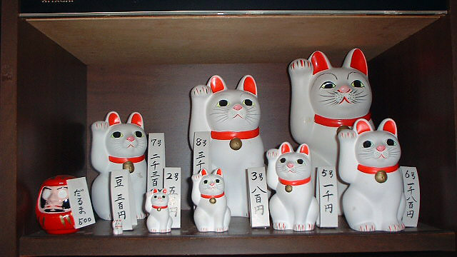 招き猫の販売もいたるところで。値段はそれほど強気ではないようです♪