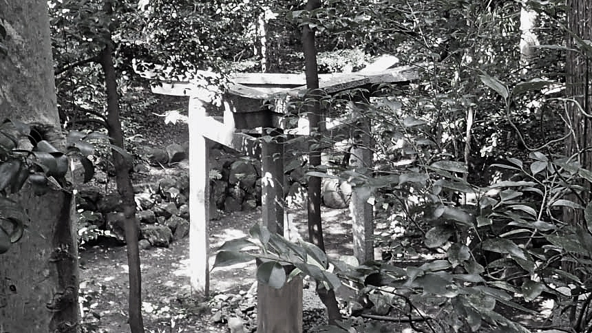 そのうえで「神との交流」をよりリアルに「体現する」ために、 この「三本柱の鳥居」の中央に座り、 天を仰ぐようにして瞑想しているという姿を想像してください。