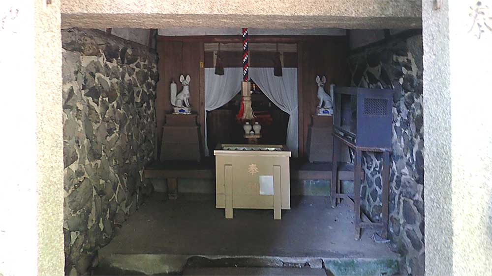 境内の奥の方にあります。三本柱の鳥居近辺は「立ち入り禁止区間」なのがちょっと残念。