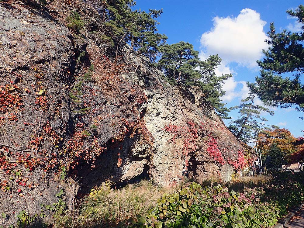 ツタが実に良い感じで紅葉していました。角度を変えて撮影した写真を紹介します。