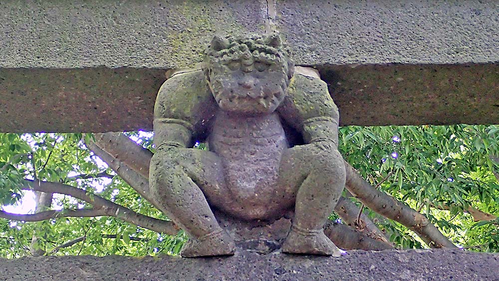 平川市柏木町にある八幡宮の石のコ鬼