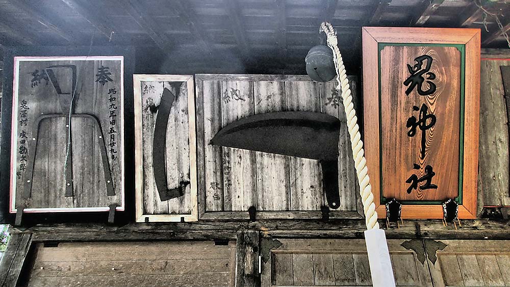 恐ろしい武器のようなものが祀られていました。注目すべきは『鬼』の字の頭に『点』が無い点。これは『角の無い鬼=悪でない』を示しているらしいですよ。